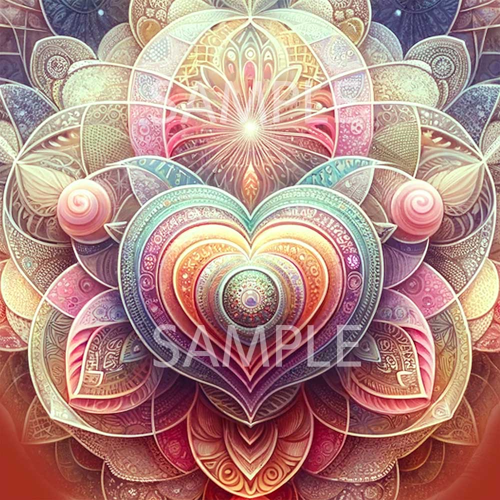 中心にある輝くハートの形は、愛と情熱の核となる場所であり、周囲の装飾的な模様は、人生のさまざまな経験や感情が魂に与える影響を象徴しています。